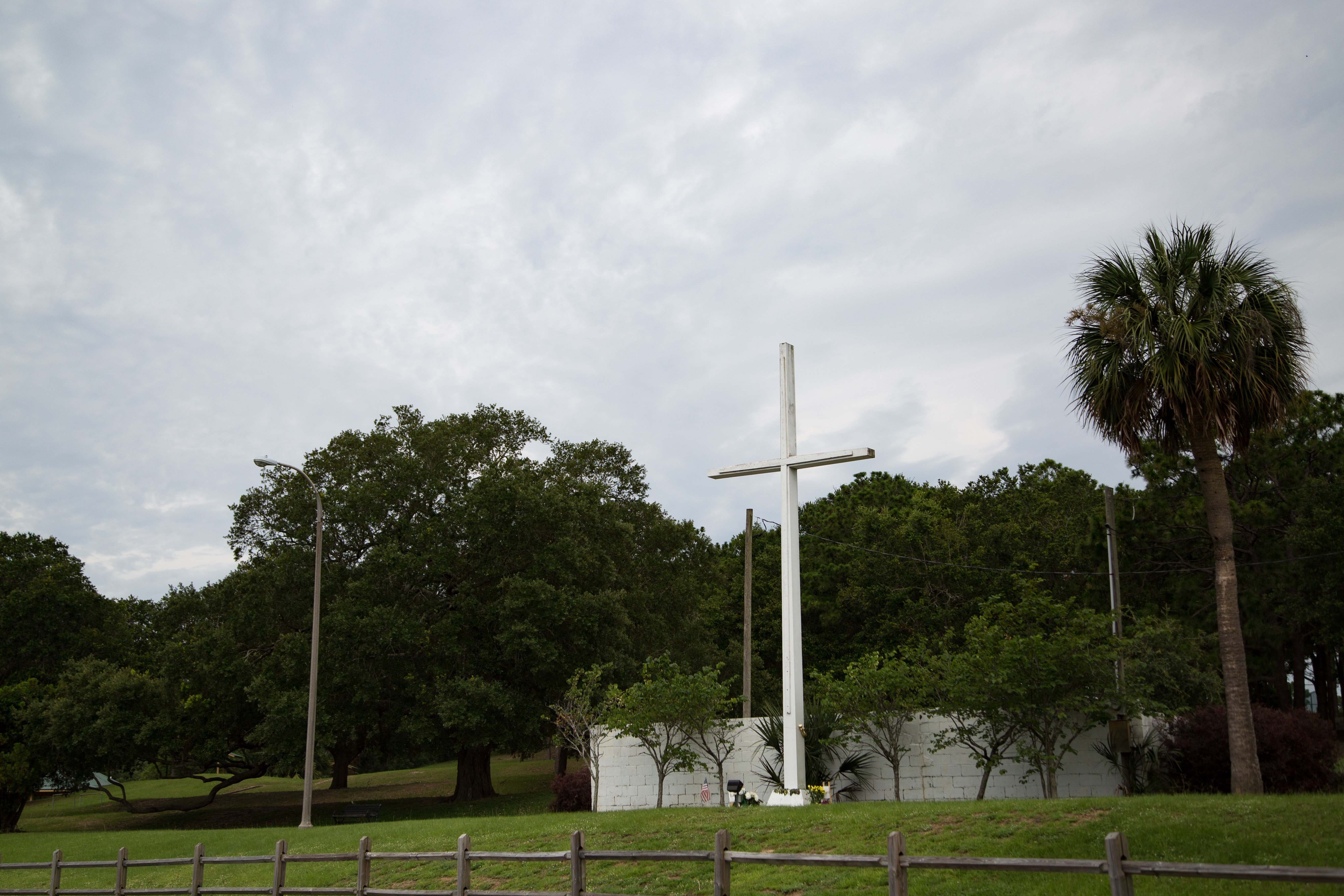 The cross was placed in Pensacola’s Bayview Park in 1941 for a community gathering organized by a local community service group as the U.S. was on the verge of entering World War II. Pensacola, known as the “Cradle of Naval Aviation,” was heavily impacted by World War II. For decades, community events have been held at the cross, including Veterans Day and Memorial Day services. Today the cross continues to serve as a symbol of the city’s history and culture.